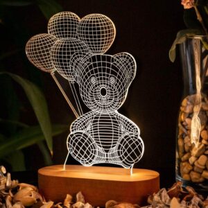Intra απο ξύλο plywood 3mm-4mm πάχος – και Χαραγμένο αρκουδάκι με μπαλόνια 3D ακρυλικό φωτιστικό 40x40 cm INTRAVECTRY-MY544943