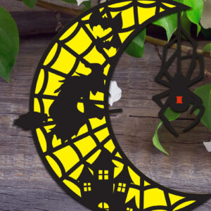 Intra απο ξύλο plywood Χρώμα wenge 3mm-4mm πάχος - Απόκριες φεγγάρι με αράχνη και μάγισσα Δίασταση 15x15 cm INTRAFABR-11200611