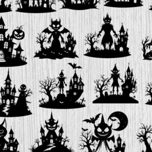 Intra απο ξύλο plywood 3mm-4mm πάχος – Χαρτί κοπής Spooky Haunted House Δίασταση 20x20 cm INTRAFABR-106608953