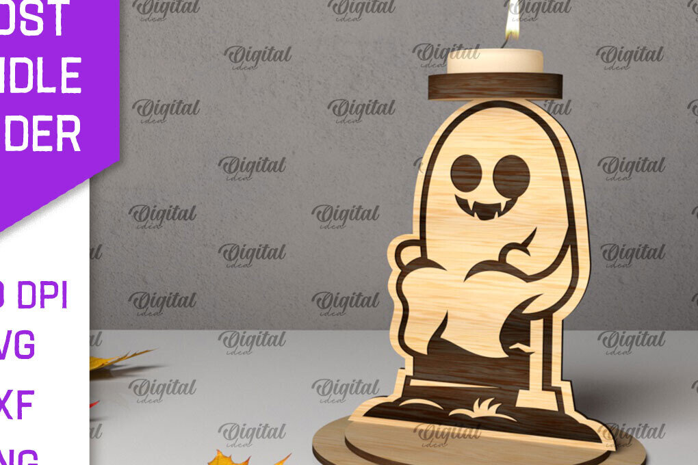 Intra απο ξύλο plywood 3mm-4mm πάχος 3D Ghost Candle Holder . Στοιχειωμένος Δίασταση 15x15 cm INTRAFABR-105569764