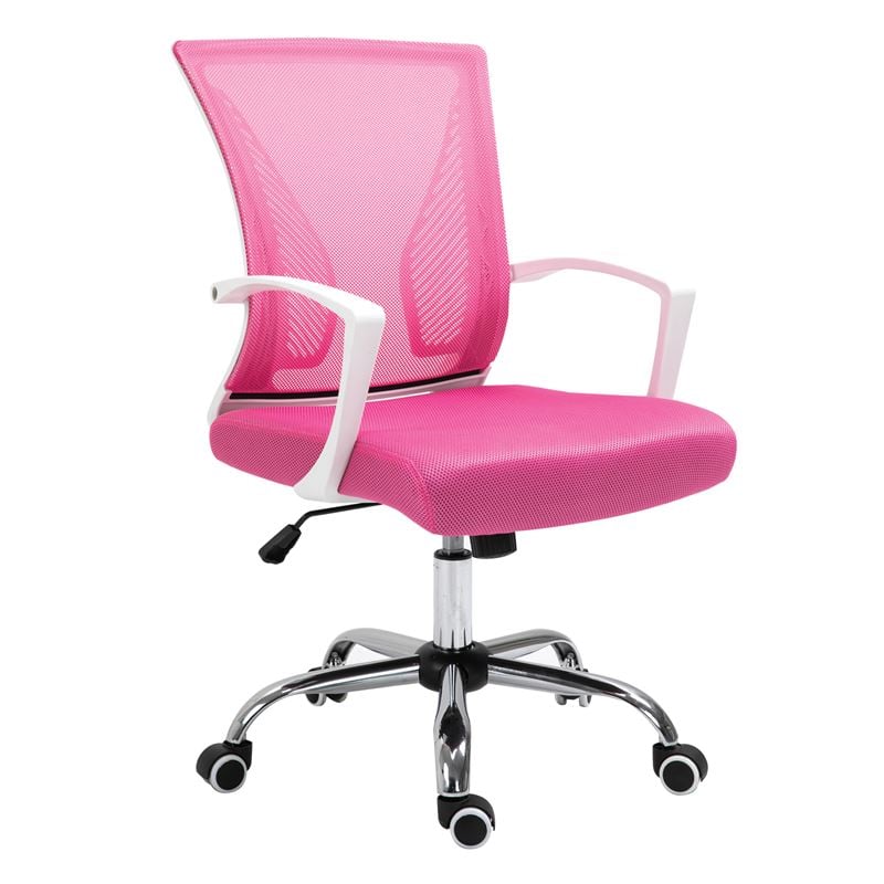 BF2101-SW Πολυθρόνα Γραφείου με Ανάκλιση Άσπρο - Mesh Ροζ
