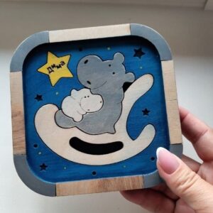 Intra απο ξύλο plywood 3mm-4mm πάχος – ξύλο παιχνιδιών παζλ Hippo Tangram 25x25 cm INTRAVECTRY-MY543604
