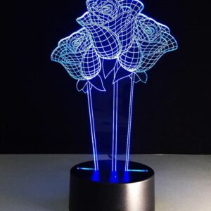 Intra απο ξύλο plywood 3mm-4mm πάχος – Χαλαμένο με λέιζερ 3 τριαντάφυλλα 3D Οπτική Ψευδαίσθηση LED Νυχτερινό Φως 10x10 cm INTRAVECTRY-MY544957