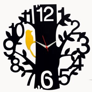 Intra απο ξύλο plywood 3mm-4mm πάχος - Δέντρο πουλί μαύρο ξύλινο ρολόι τοίχου διάνυσμα Δίασταση 30x30 cm Intraeaxys-eo2wlqo8