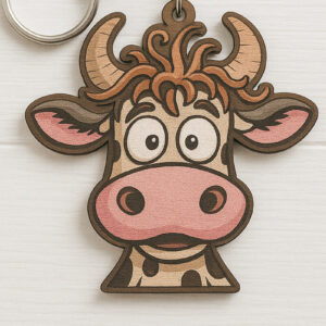 Intra απο ξύλο plywood 3mm-4mm πάχος - Αστεία μπρελόκ με κεφαλή αγελάδας Δίασταση 4x4 cm INTRAFABR-122092721