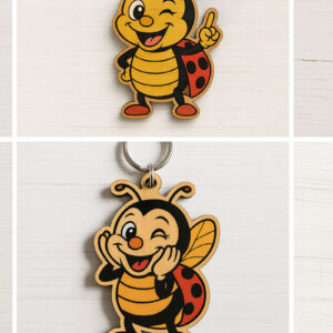 Intra απο ξύλο plywood 3mm-4mm πάχος - Αστεία δέσμη μπρελόκ μελισσών Δίασταση 4x4 cm INTRAFABR-122220452