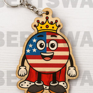 Intra απο ξύλο plywood 3mm-4mm πάχος – Μπρελόκ Emoji Patriotic King USA Δίασταση 5x5 cm INTRAFABR-122600968