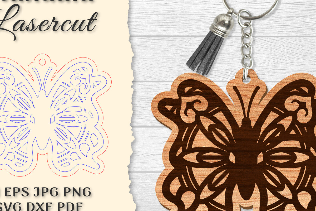 Intra απο ξύλο plywood 3mm-4mm πάχος Μπρελόκ Butterfly Mandala Δίασταση 6x6 cm INTRAFABR-121325478