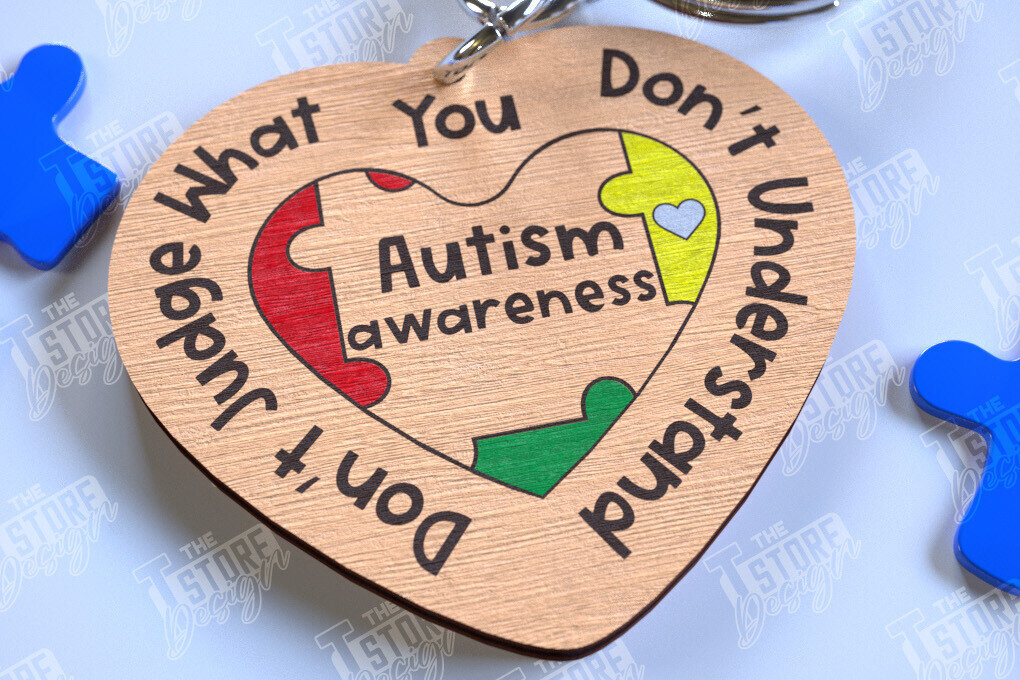 Intra απο ξύλο plywood 3mm-4mm πάχος Μπρελόκ Ευαισθητοποίησης για τον Αυτισμό | Σημάδι αυτισμού Δίασταση 6x6 cm INTRAFABR-113927142