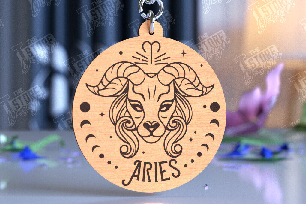 Intra απο ξύλο plywood 3mm-4mm πάχος Μπρελόκ Κριού Zodiac | Ζωδιακός κύκλος Δίασταση 6x6 cm INTRAFABR-123373898