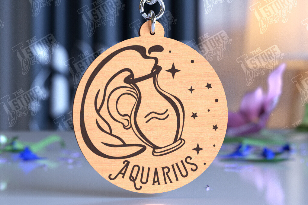 Intra απο ξύλο plywood 3mm-4mm πάχος Μπρελόκ Υδροχόος | Ζώδιο | CNC Δίασταση 6x6 cm INTRAFABR-98273084