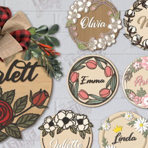 Intra απο ξύλο plywood Χρώμα wenge 3mm-4mm πάχος - Οικογενειακό μονόγραμμα κοπής με λέιζερ Δίασταση 30x20 cm INTRAFABR-95980301