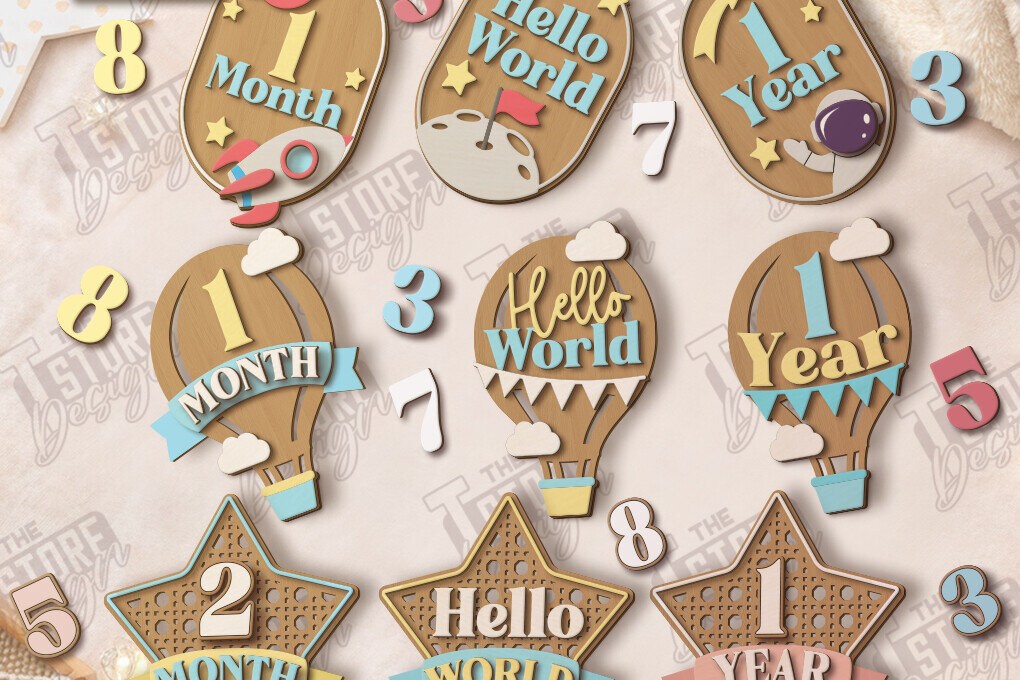 Intra απο ξύλο plywood 3mm-4mm πάχος κοπής με λέιζερ Baby Milestone Countdown Δίασταση 15x15 cm INTRAFABR-122684187