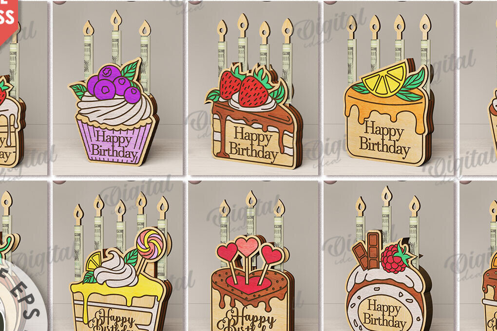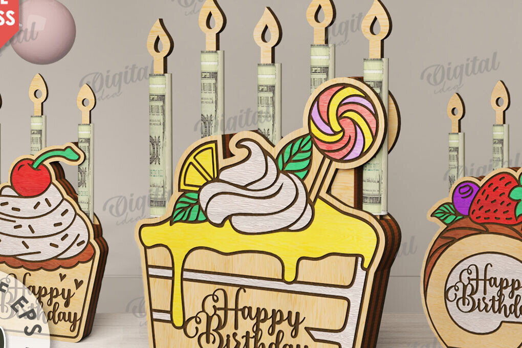 Intra απο ξύλο plywood 3mm-4mm πάχος κοπής Birthday Cake Δίασταση 15x15 cm INTRAFABR-97302358