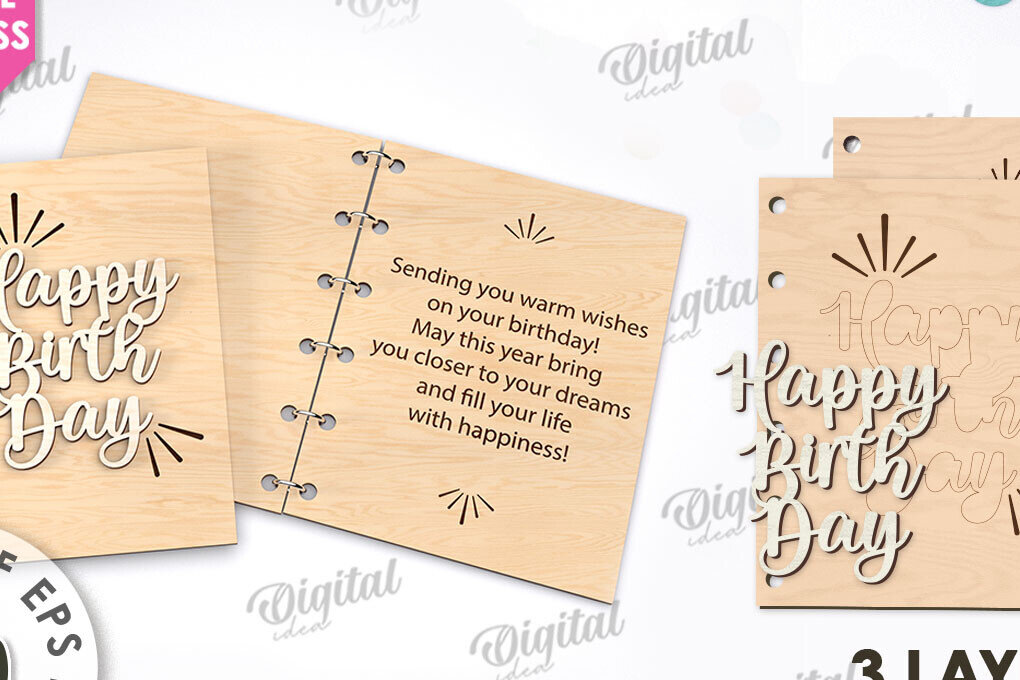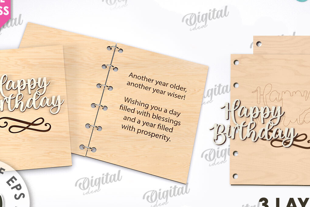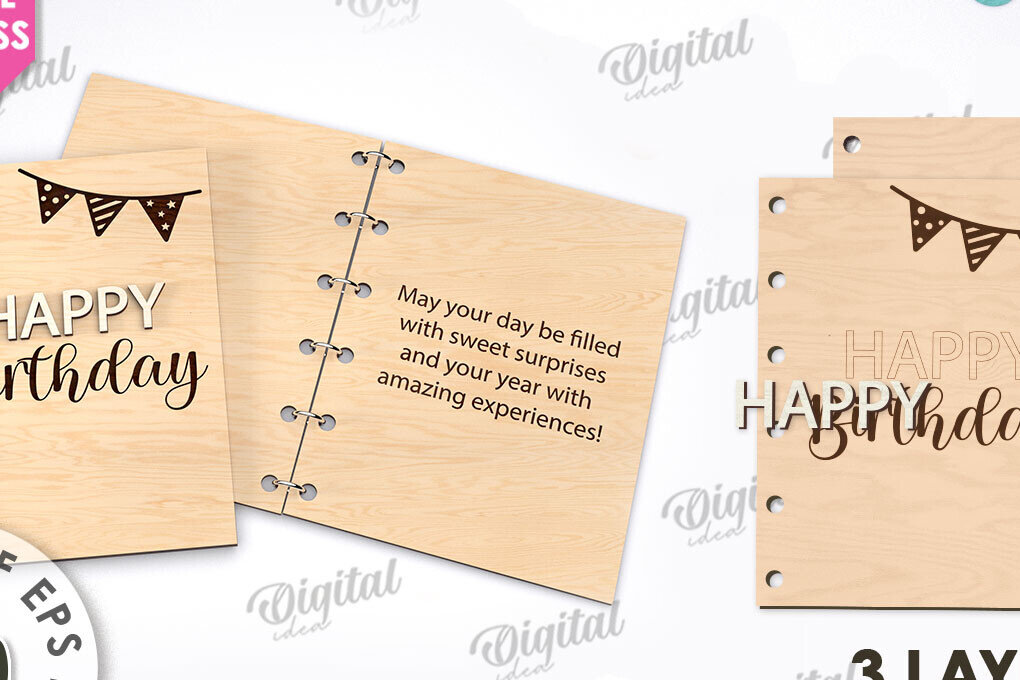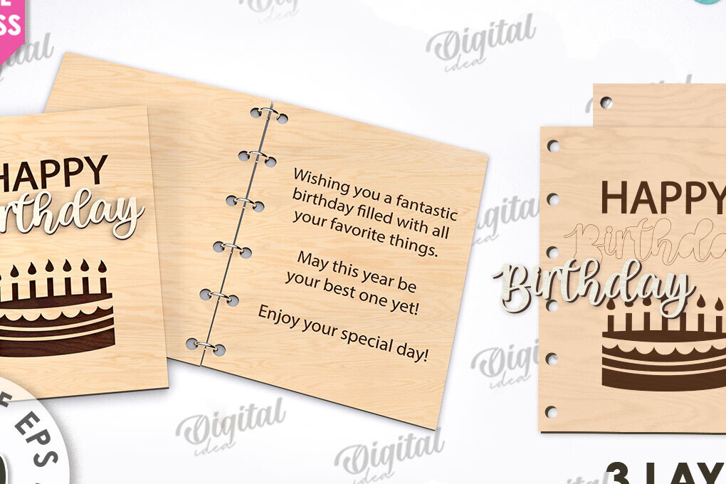 Intra απο ξύλο plywood 3mm-4mm πάχος Τρισδιάστατη Κάρτα Χρόνια Πολλά με λέιζερ Δίασταση 15x15 cm INTRAFABR-113992840