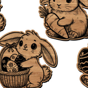 Intra απο ξύλο plywood 3mm-4mm πάχος - Πακέτο κοπής με λέιζερ Easter Bunny & Chick Δίασταση 6x6 cm INTRAFABR-112682039