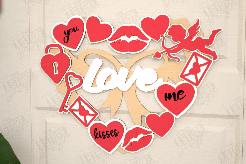 Intra απο ξύλο plywood 3mm-4mm πάχος – Στεφάνι του Αγίου Βαλεντίνου | Διακόσμηση τοίχου |CNC Δίασταση 40x30 cm INTRAFABR-115366948