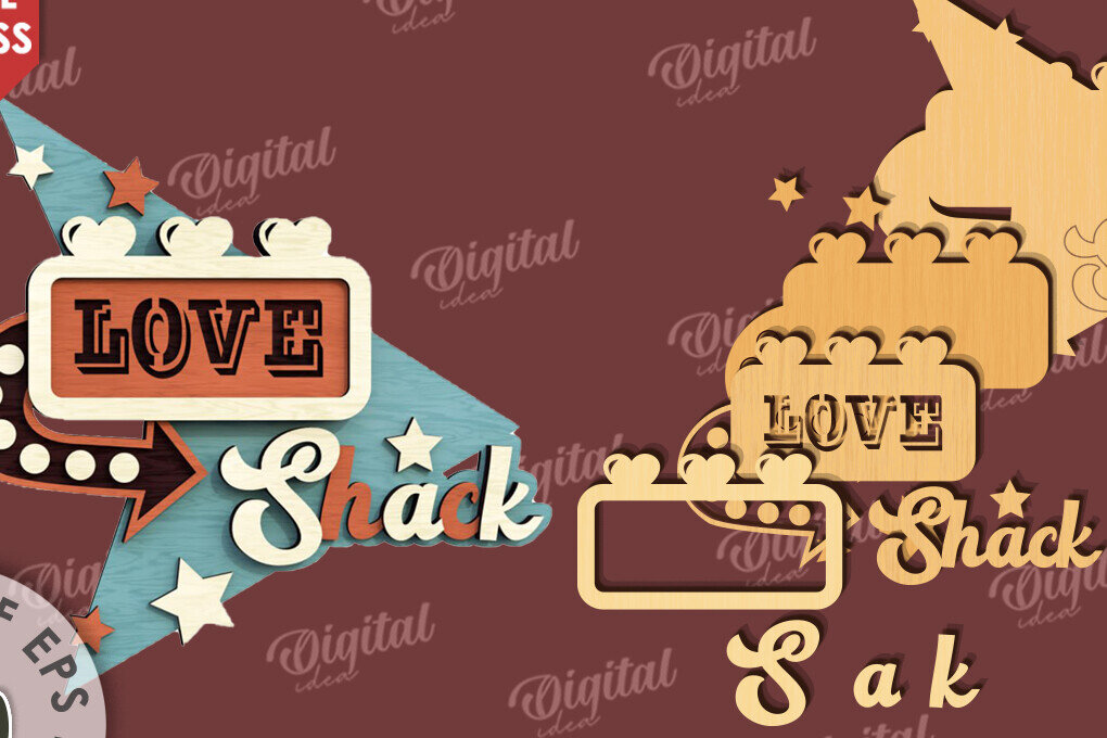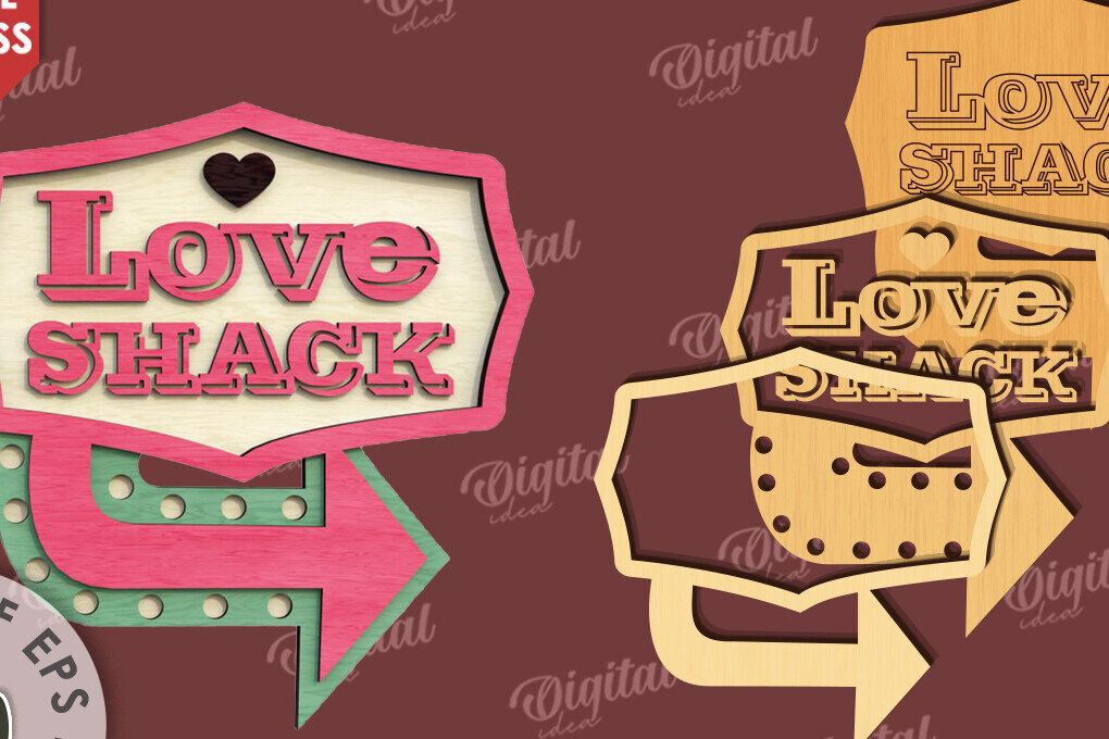 Intra απο ξύλο plywood 3mm-4mm πάχος 3D Love Shack Door Sign Cut Δίασταση 15x15 cm INTRAFABR-115231871