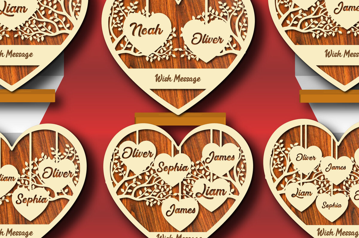 Intra απο ξύλο plywood 3mm-4mm πάχος Καρδιές μελών της οικογένειας του Αγίου Βαλεντίνου 6 στυλ Δίασταση 15x15 cm INTRAFABR-23631884