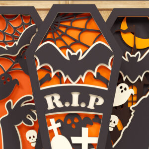 Intra απο ξύλο plywood Χρώμα wenge 3mm-4mm πάχος - Πακέτο χάρτινο κομμένο 3D Halloween Coffin Δίασταση 1500x1500 cm INTRAFABR-23130149