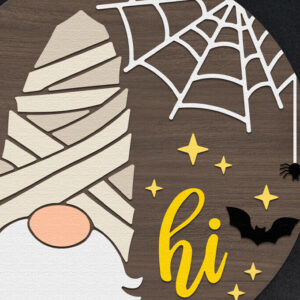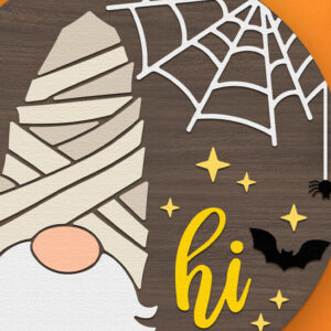 Intra απο ξύλο plywood Χρώμα wenge 3mm-4mm πάχος - Gnome Mummy , αποκριάτικη πινακίδα πόρτας DXF Δίασταση 4x4 cm INTRAFABR-119187000