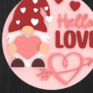 Intra απο ξύλο plywood Χρώμα wenge 3mm-4mm πάχος - Ζώδιο του Αγίου Βαλεντίνου Gnome Hello Love Δίασταση 20x20 cm INTRAFABR-94396899