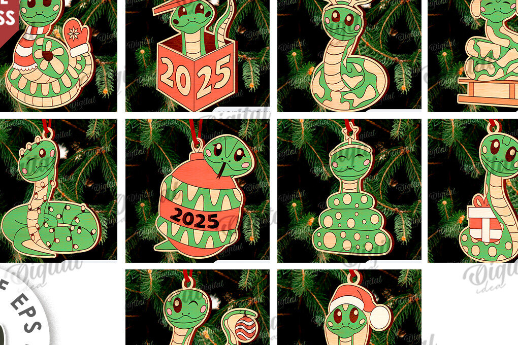 Intra απο ξύλο plywood 3mm-4mm πάχος Δέσμη κοπής με λέιζερ Χριστουγεννιάτικα φίδια Δίασταση 15x15 cm INTRAFABR-108902293