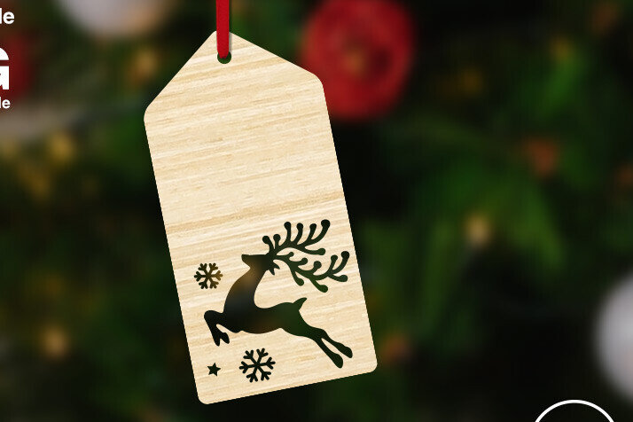 Intra απο ξύλο plywood 3mm-4mm πάχος Ετικέτα δώρου Χριστουγέννων με Jolly Reindeer Δίασταση 15x15 cm INTRAFABR-86529001