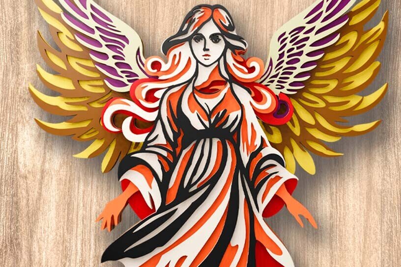 Intra απο ξύλο plywood 3mm-4mm πάχος κοπής με λέιζερ πολλαπλών επιπέδων Angel 3D Δίασταση 9x9 cm INTRAFABR-110830908
