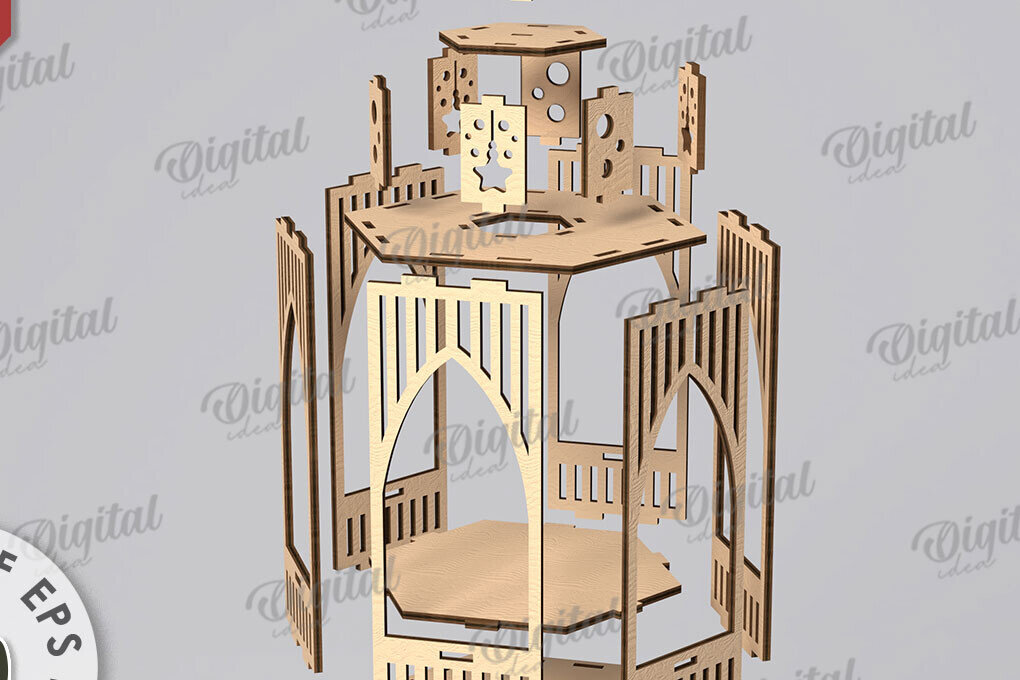 Intra απο ξύλο plywood 3mm-4mm πάχος Τρισδιάστατο σχέδιο κοπής με λέιζερ Χριστουγεννιάτικο φανάρι Δίασταση 15x15 cm INTRAFABR-108833544