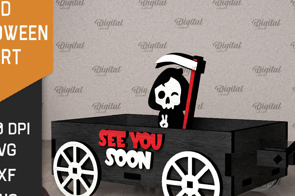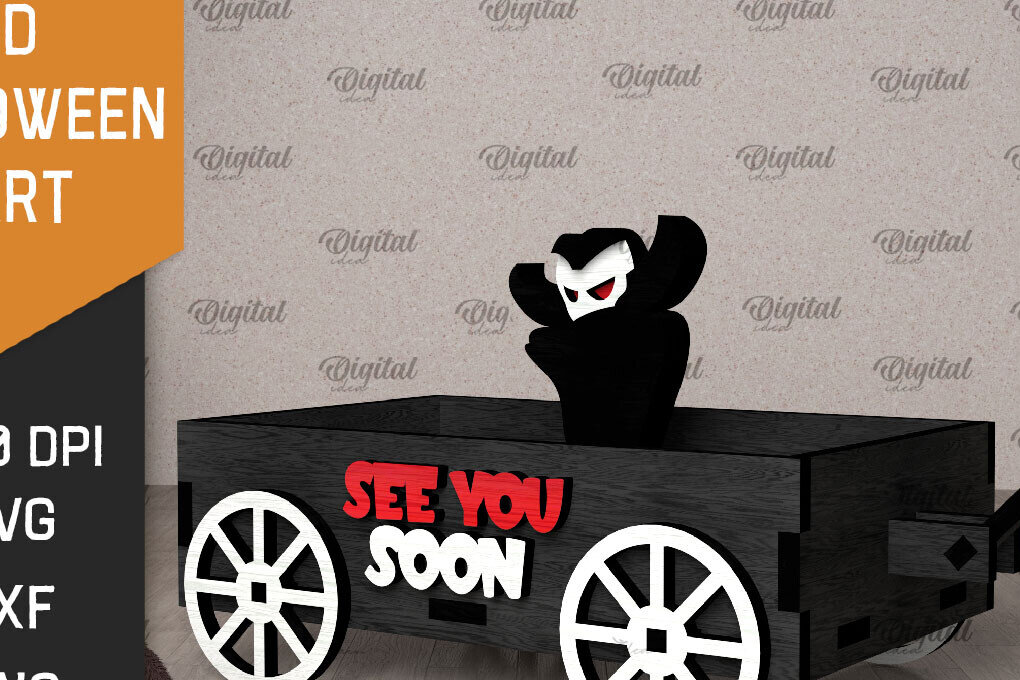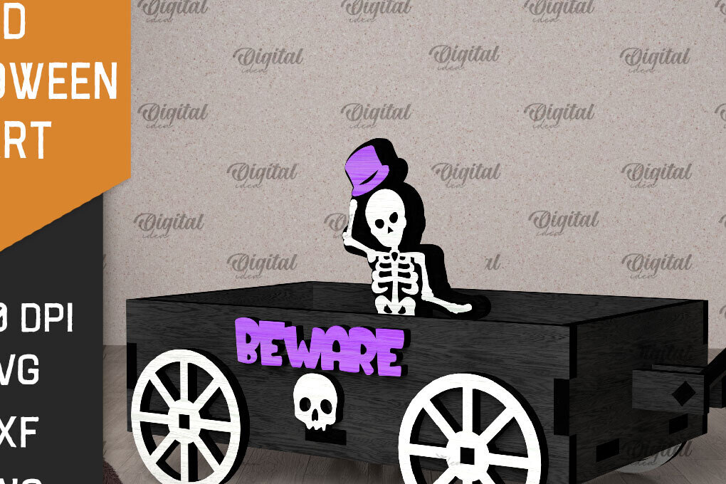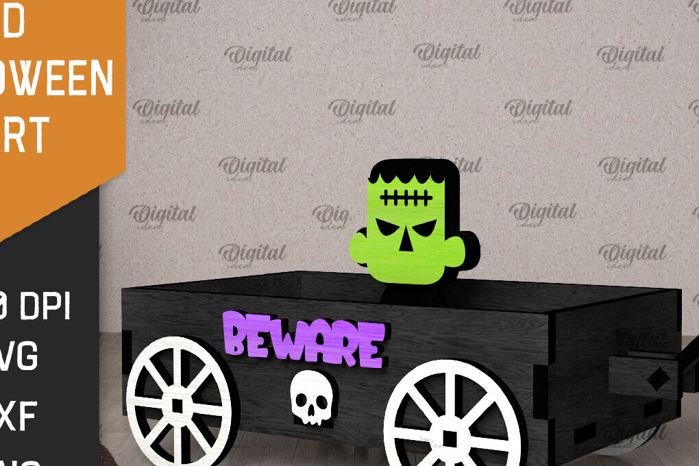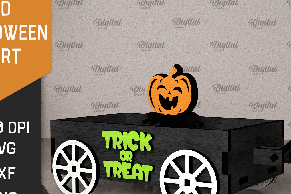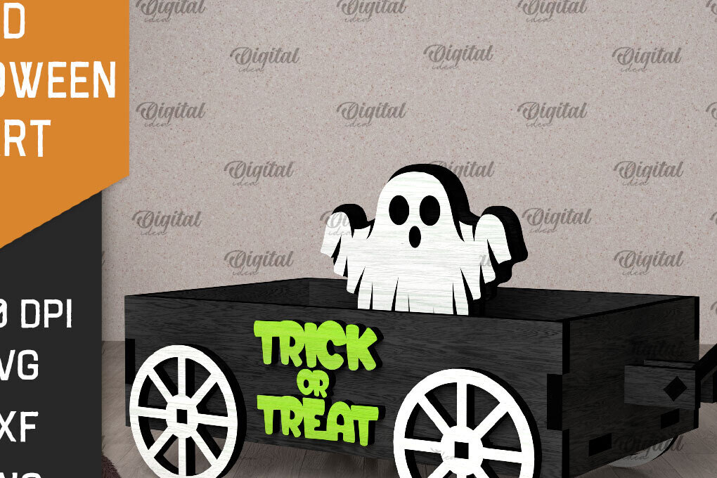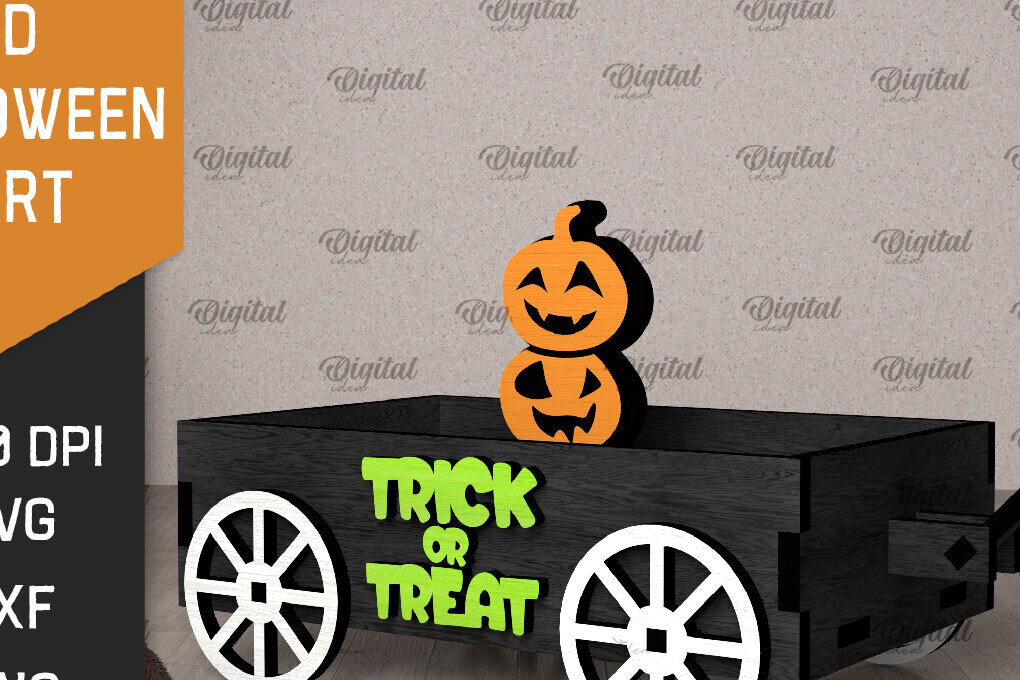 Intra απο ξύλο plywood 3mm-4mm πάχος 3D αποκριάτικο καρότσι με λέιζερ Δίασταση 15x15 cm INTRAFABR-106137936
