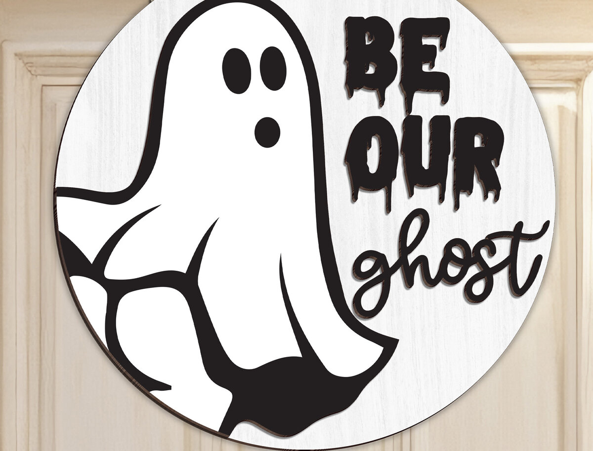 Intra απο ξύλο plywood 3mm-4mm πάχος Be Our Ghost Halloween Door Hanger Δίασταση 15x15 cm INTRAFABR-102201304