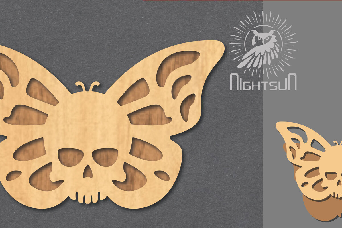 Intra απο ξύλο plywood 3mm-4mm πάχος Διακόσμηση κοπής με λέιζερ κρανίου πεταλούδας 2 Δίασταση 15x15 cm INTRAFABR-123688798