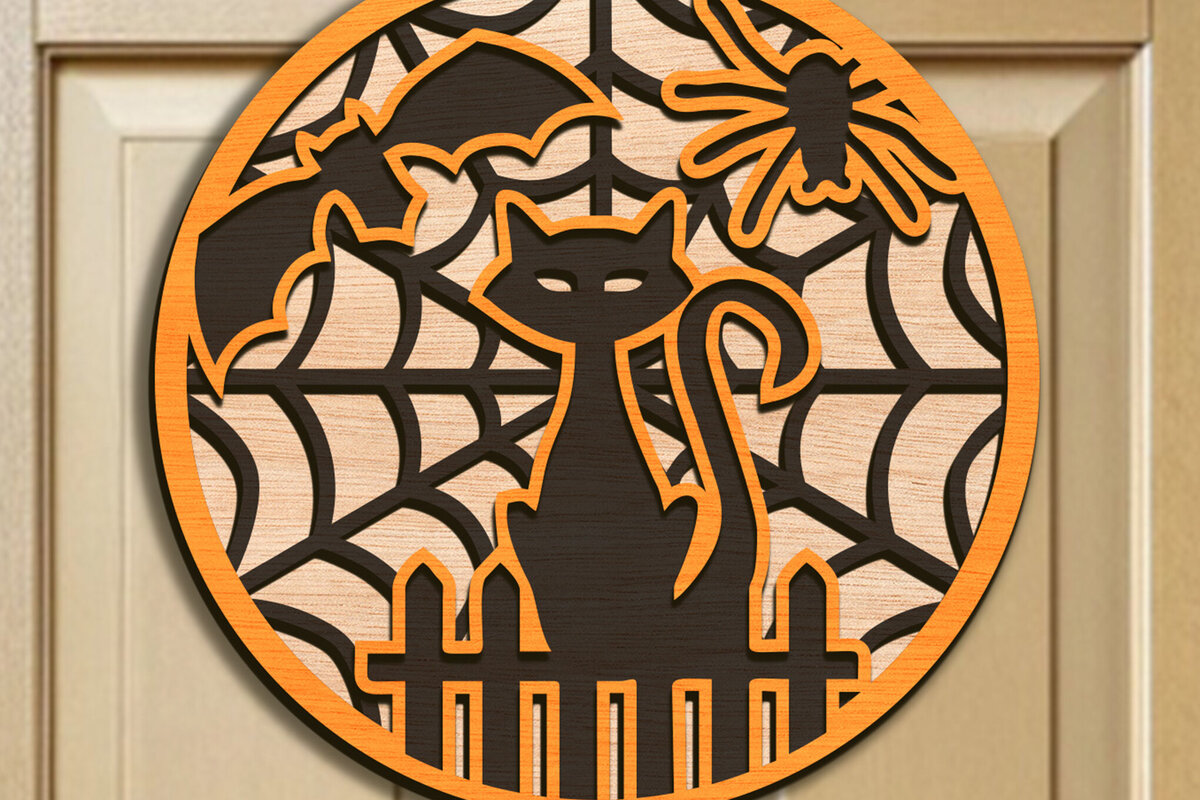 Intra απο ξύλο plywood 3mm-4mm πάχος Μαύρη γάτα κρεμάστρα πόρτας αποκριών Δίασταση 15x15 cm INTRAFABR-103650458