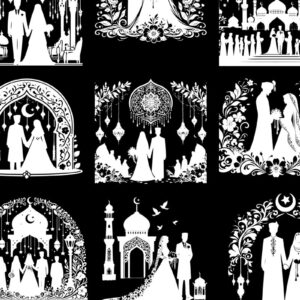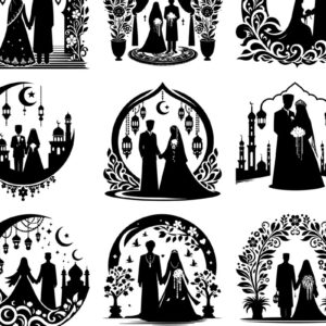Intra απο ξύλο plywood 3mm-4mm πάχος - Κομψή δέσμη ισλαμικής γαμήλιας σιλουέτας Δίασταση 20x20 cm INTRAFABR-118036357