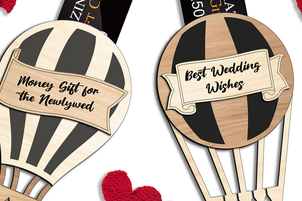 Intra απο ξύλο plywood 3mm-4mm πάχος – Κάτοχος χρημάτων με δωροκάρτα με μπαλόνια γάμου Δίασταση 20x20 cm INTRAFABR-105811122