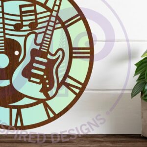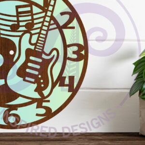 Intra απο ξύλο plywood Χρώμα wenge 3mm-4mm πάχος - Κιθάρες Ρολόι τοίχου με λέιζερ κομμένα αρχεία, Δίασταση 30x20 cm INTRAFABR-83025507