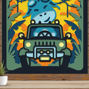 Intra απο ξύλο plywood Χρώμα wenge 3mm-4mm πάχος - Οι δεινόσαυροι οδηγούν ένα αυτοκίνητο 3D Shadow Box Δίασταση 714x714 cm INTRAFABR-32953763