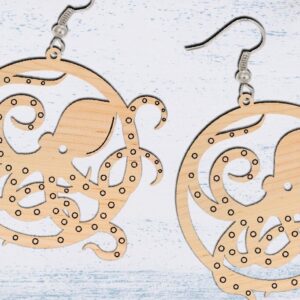 Intra απο ξύλο plywood Χρώμα wenge 3mm-4mm πάχος - Σκουλαρίκι κομμένο με λέιζερ, σκουλαρίκι χταπόδι Δίασταση 3x3 cm INTRAFABR-110737936