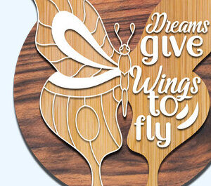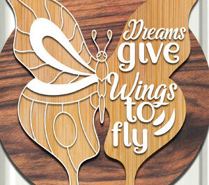 Intra απο ξύλο plywood Χρώμα wenge 3mm-4mm πάχος - Τα όνειρα δίνουν φτερά για να πετάξουν στρογγυλό σημάδι Δίασταση 30x20 cm INTRAFABR-110186361