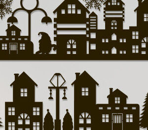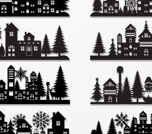 Intra απο ξύλο plywood 3mm-4mm πάχος - Πακέτο χριστουγεννιάτικου χωριού Paper Cut Δίασταση 15x15 cm INTRAFABR-81337705