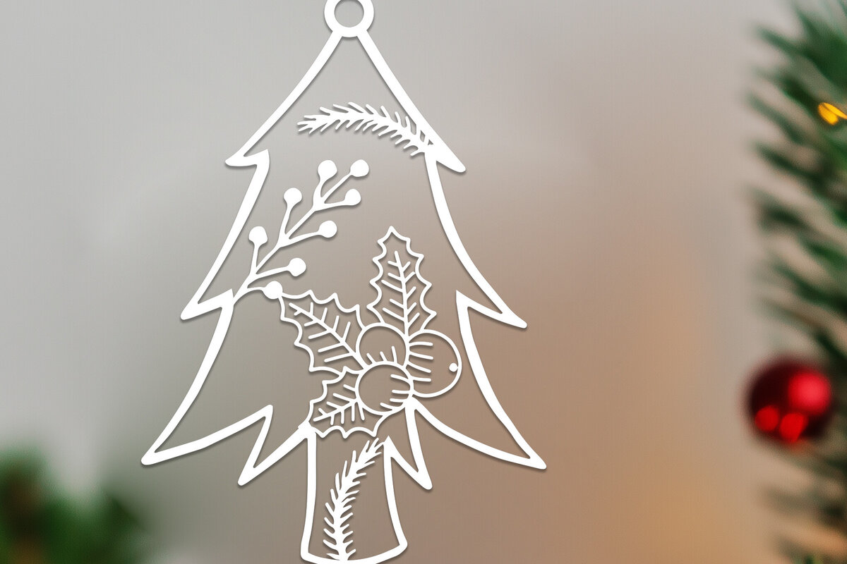 Intra απο ξύλο plywood 3mm-4mm πάχος Χριστουγεννιάτικο διακοσμητικό δέντρο με φύλλα γάτας Δίασταση 15x15 cm INTRAFABR-80518174