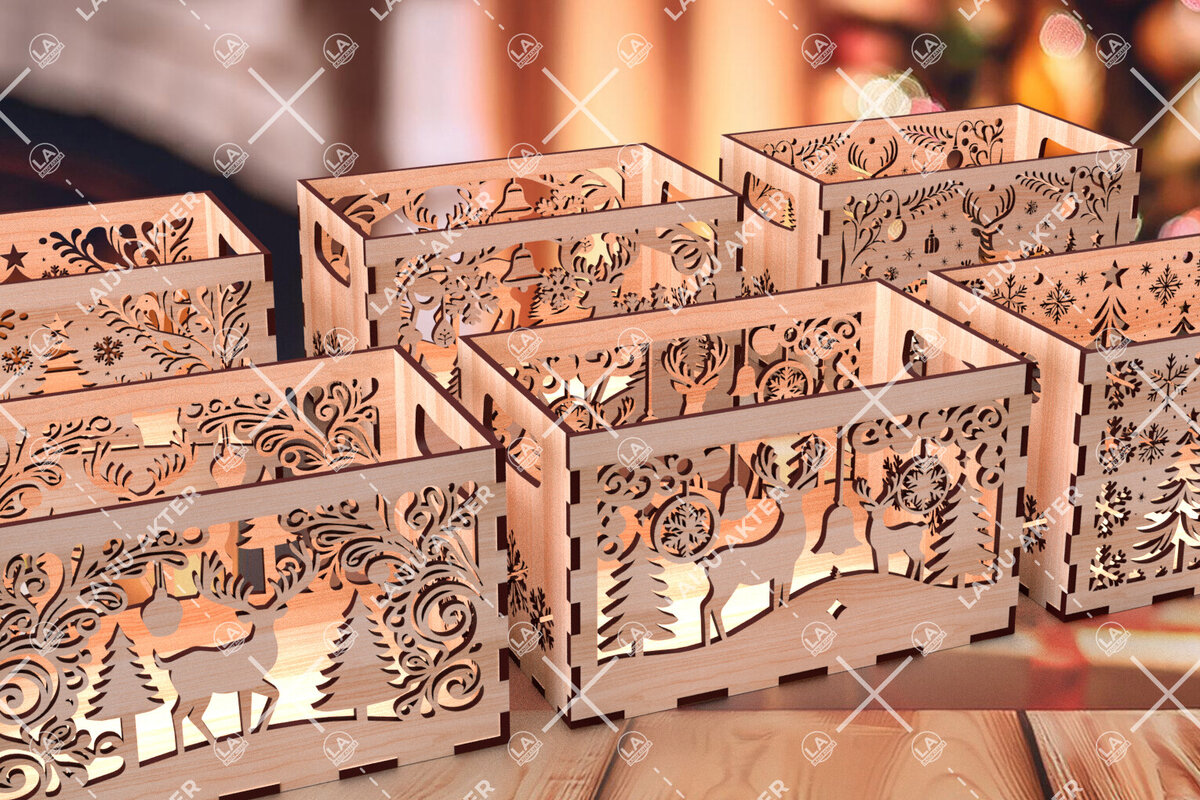 Intra απο ξύλο plywood 3mm-4mm πάχος Χριστουγεννιάτικο κουτί αποθήκευσης κοπής με λέιζερ Δίασταση 5x5 cm INTRAFABR-107428596