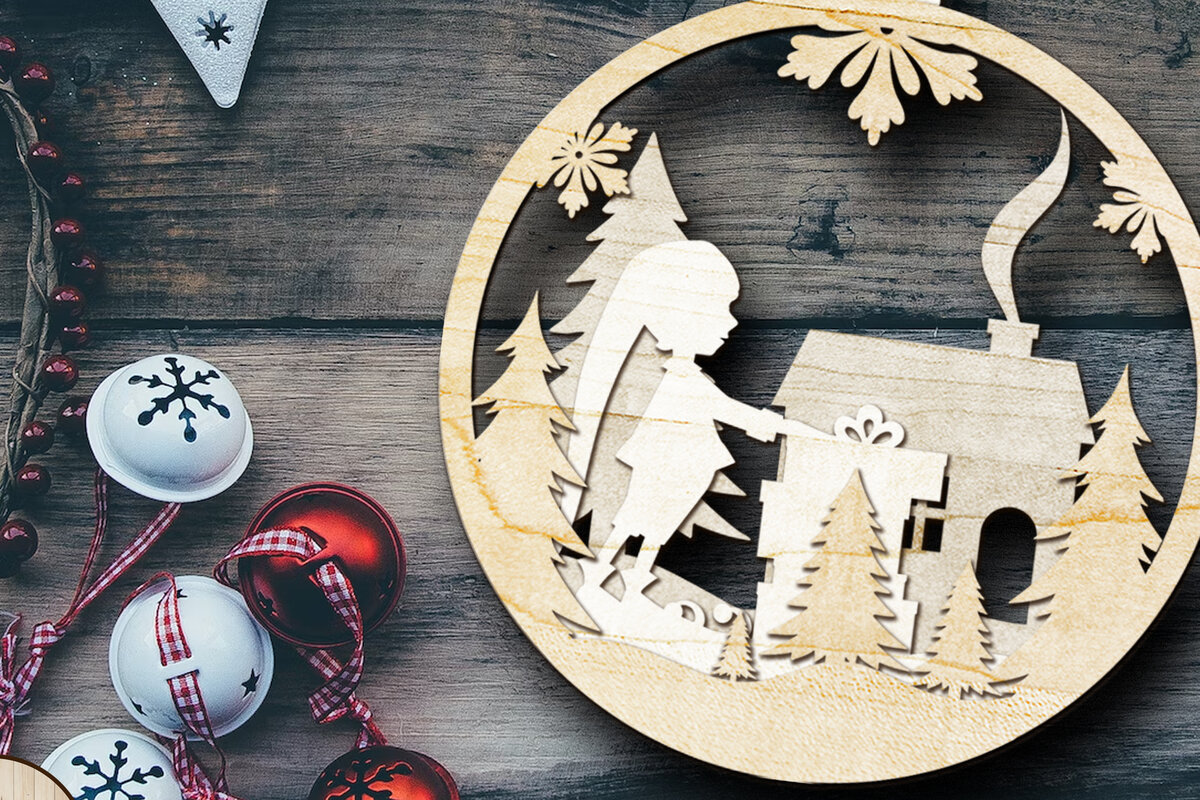 Intra απο ξύλο plywood 3mm-4mm πάχος Χριστουγεννιάτικο οικογενειακό σημάδι κοπής με λέιζερ Δίασταση 15x15 cm INTRAFABR-79220986