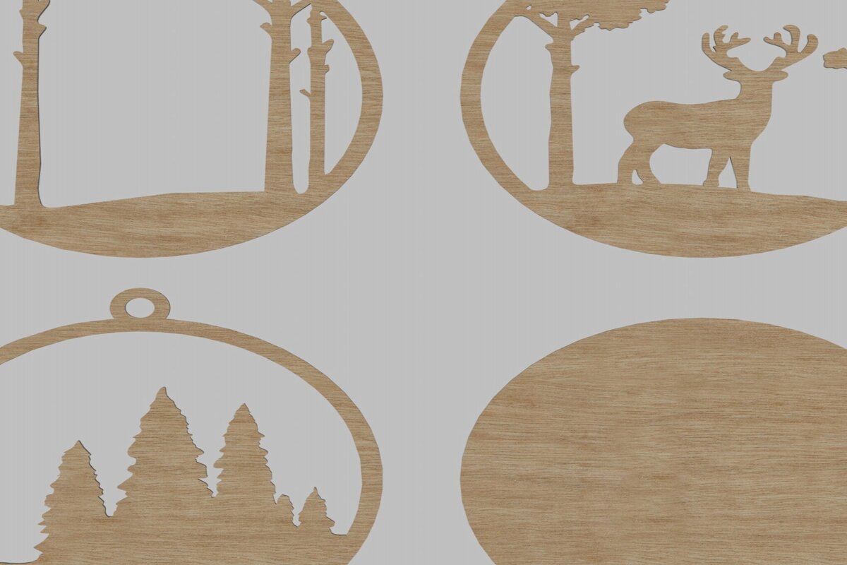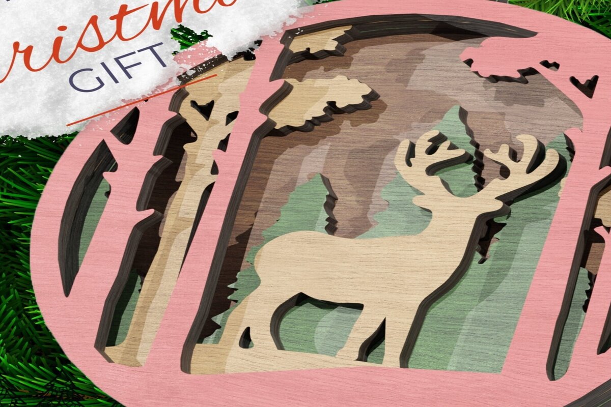 Intra απο ξύλο plywood 3mm-4mm πάχος Χριστουγεννιάτικο στολίδι Ελάφια στο δάσος Δίασταση 8x8 cm INTRAFABR-113819164