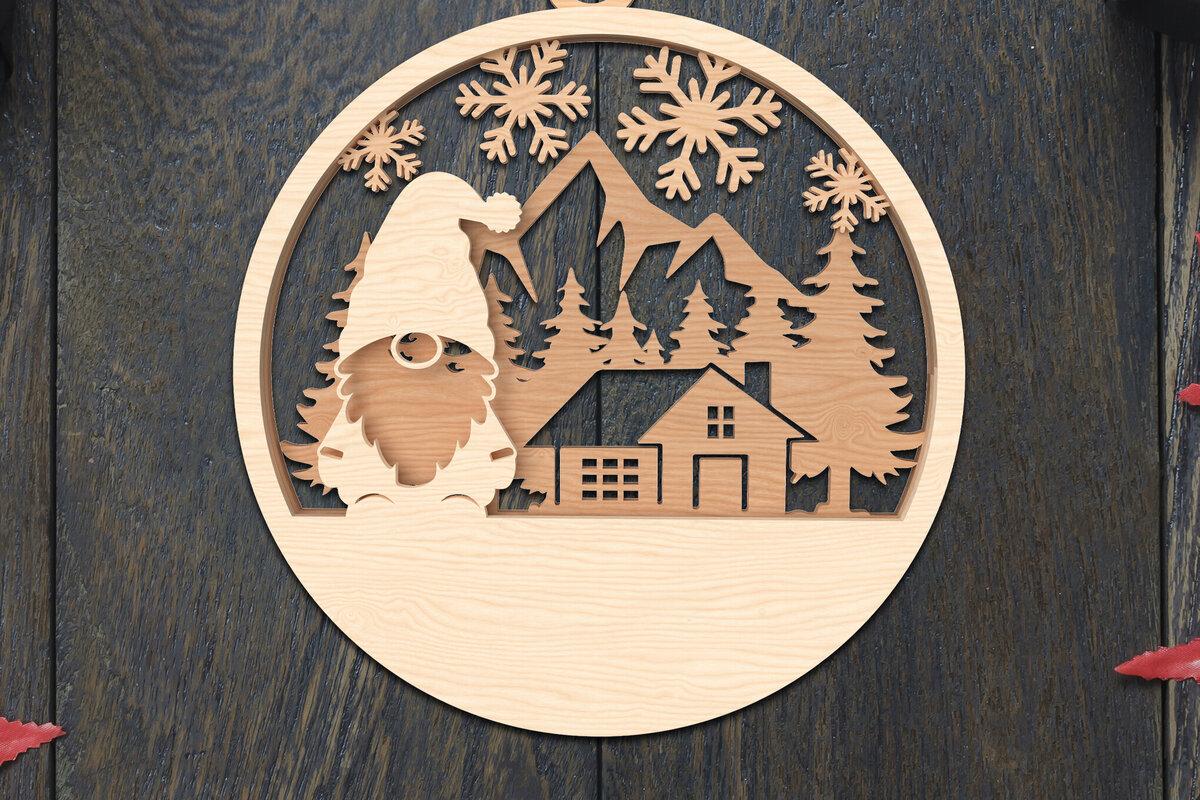 Intra απο ξύλο plywood 3mm-4mm πάχος Χριστουγεννιάτικο στολίδι με κομμένο λέιζερ Gnome Δίασταση 8x8 cm INTRAFABR-106791281