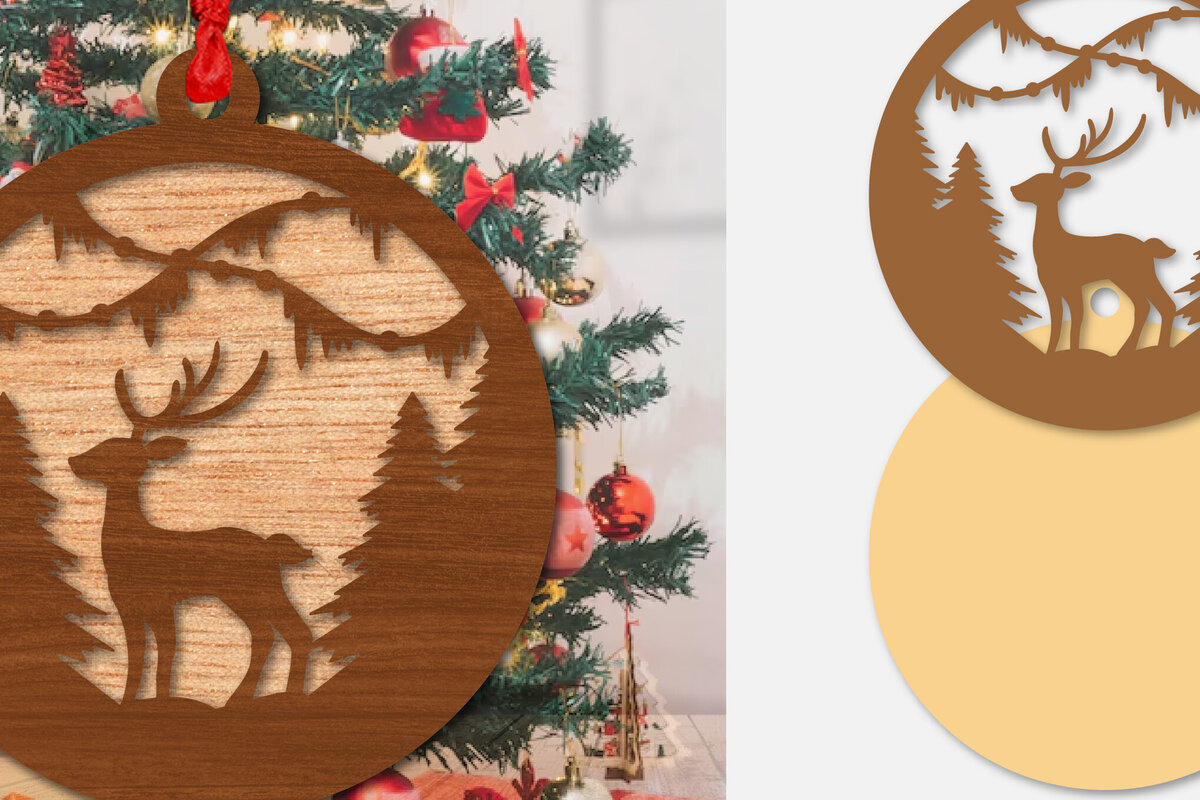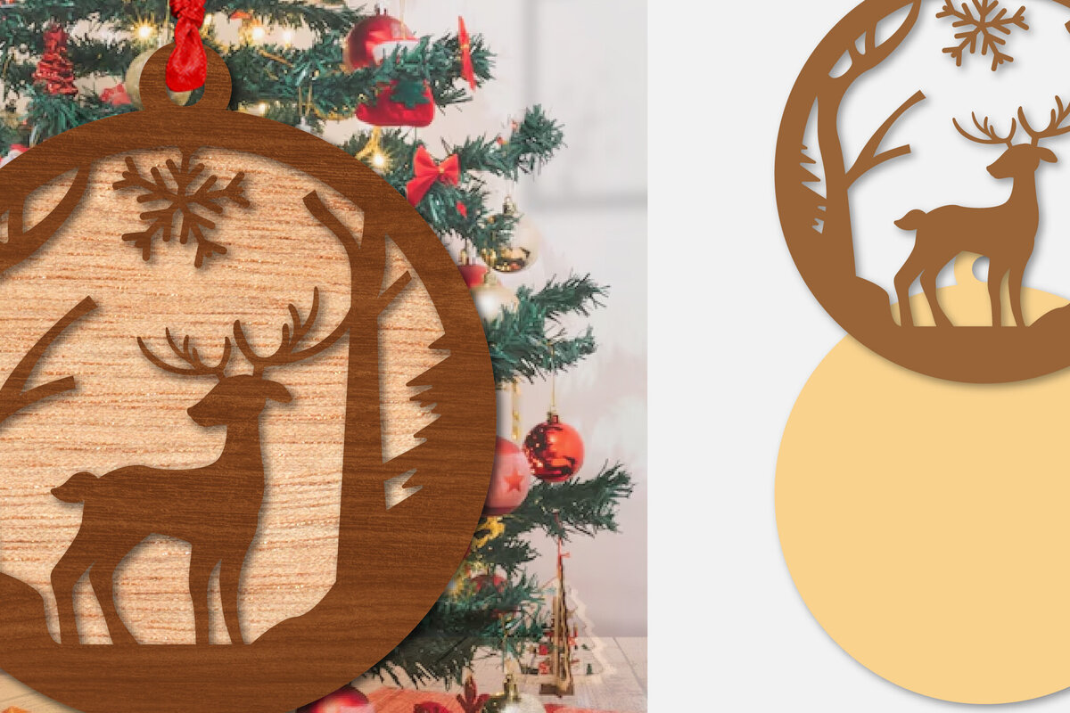 Intra απο ξύλο plywood 3mm-4mm πάχος Χριστουγεννιάτικο Στρογγυλό Στολίδι Ελαφιού Δίασταση 8x8 cm INTRAFABR-111164982