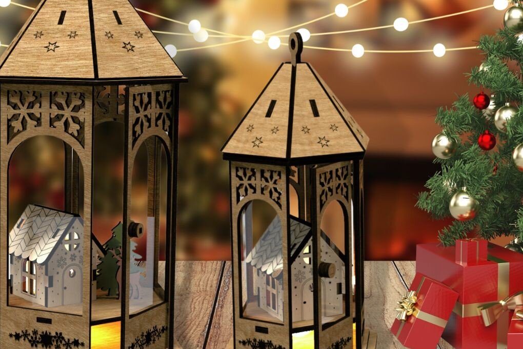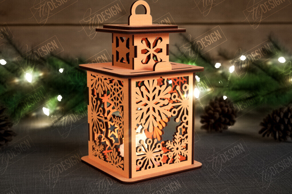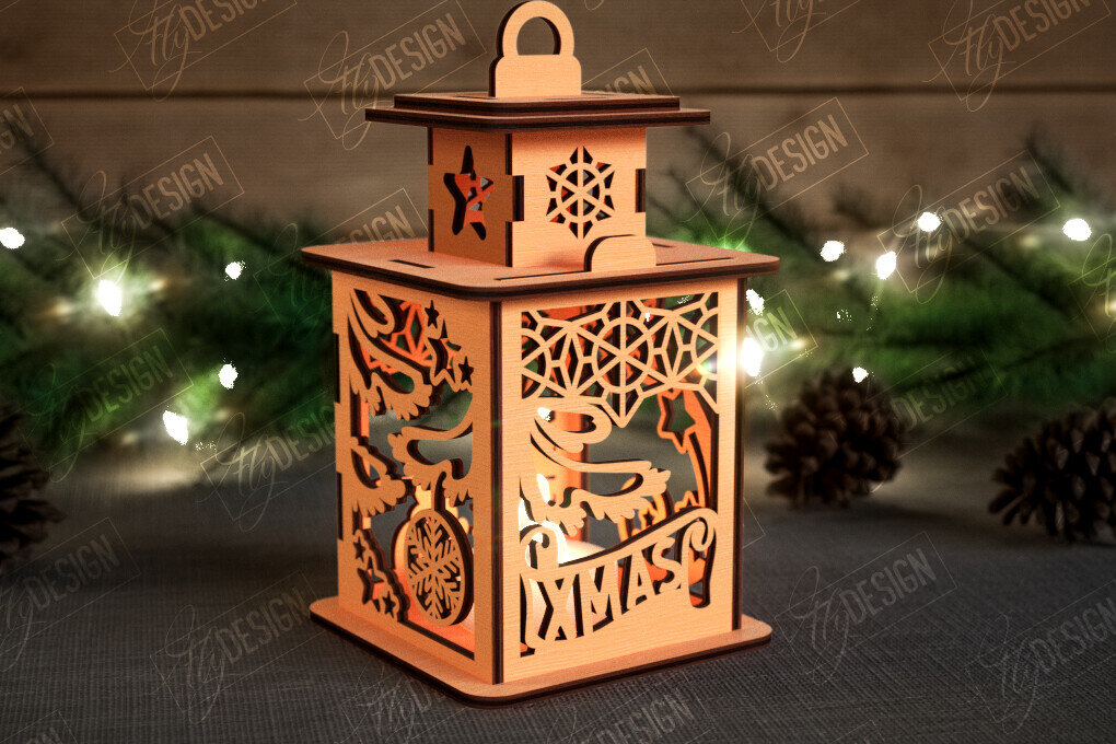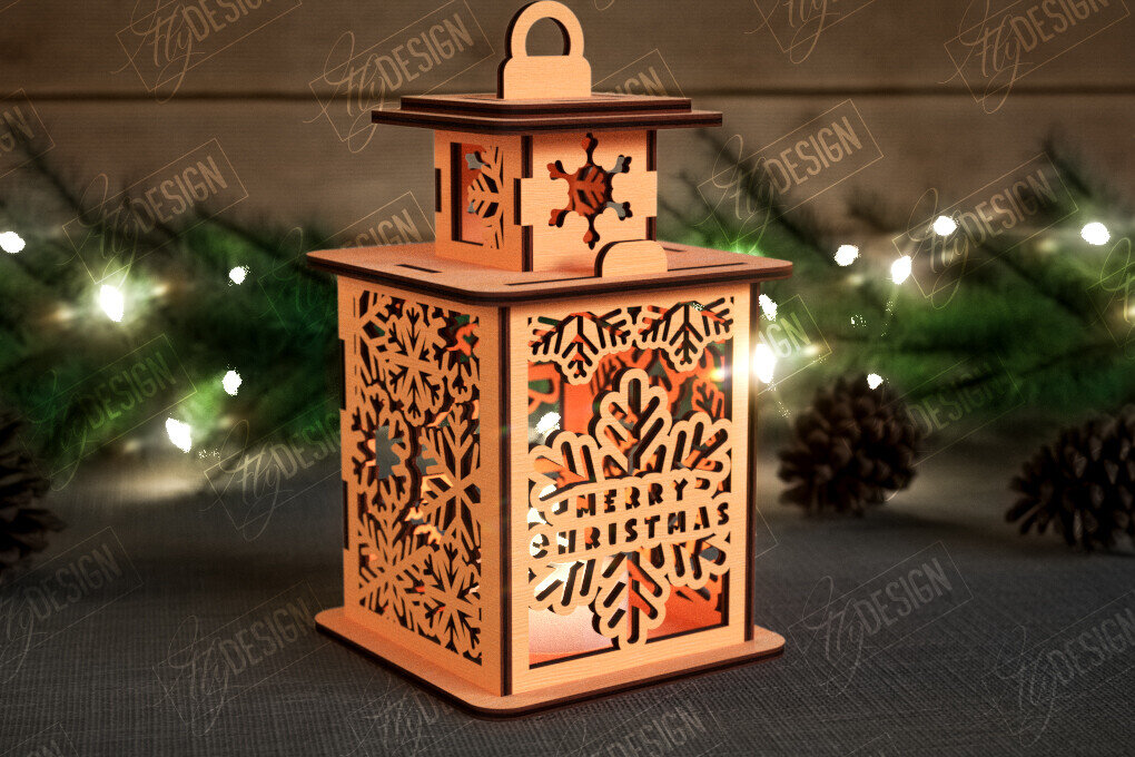 Intra απο ξύλο plywood 3mm-4mm πάχος Χριστουγεννιάτικο Φανάρι 3D Δίασταση 15x15 cm INTRAFABR-51572662