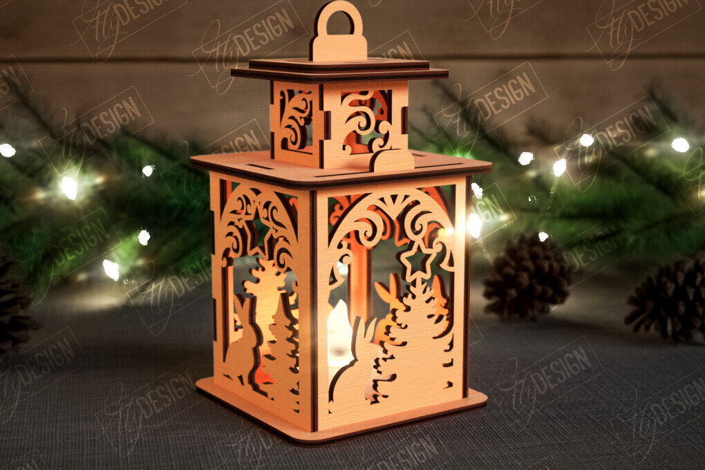 Intra απο ξύλο plywood 3mm-4mm πάχος Χριστουγεννιάτικο Φανάρι | 3D φανάρι σκιών Δίασταση 15x15 cm INTRAFABR-108898694