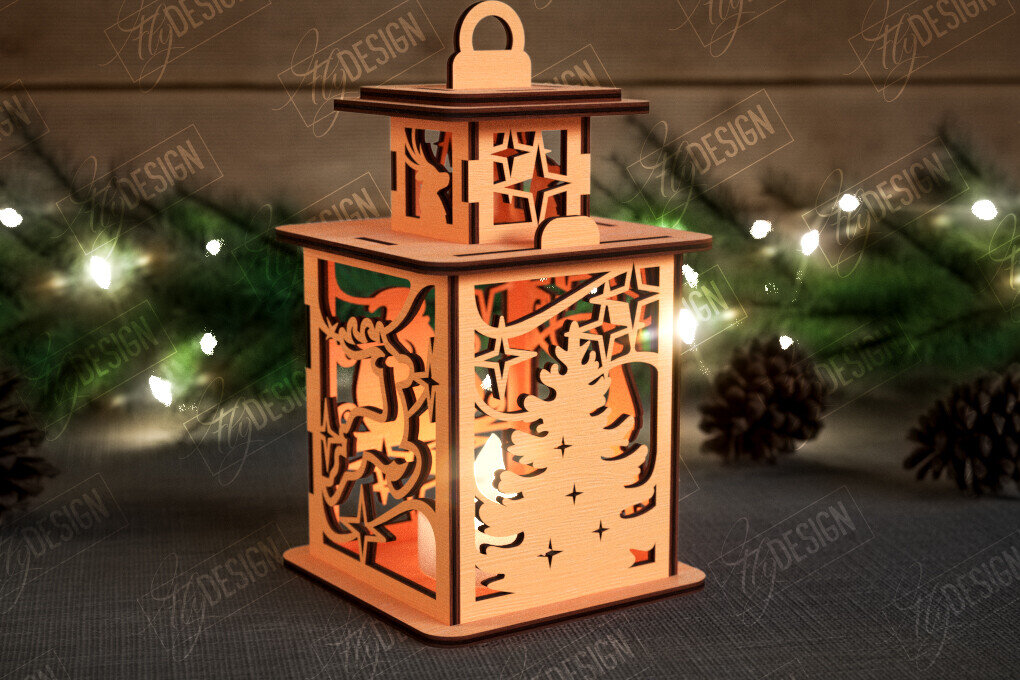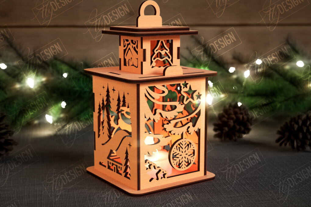 Intra απο ξύλο plywood 3mm-4mm πάχος Χριστουγεννιάτικο Φανάρι | 3D φανάρι σκιών Δίασταση 15x15 cm INTRAFABR-108898713